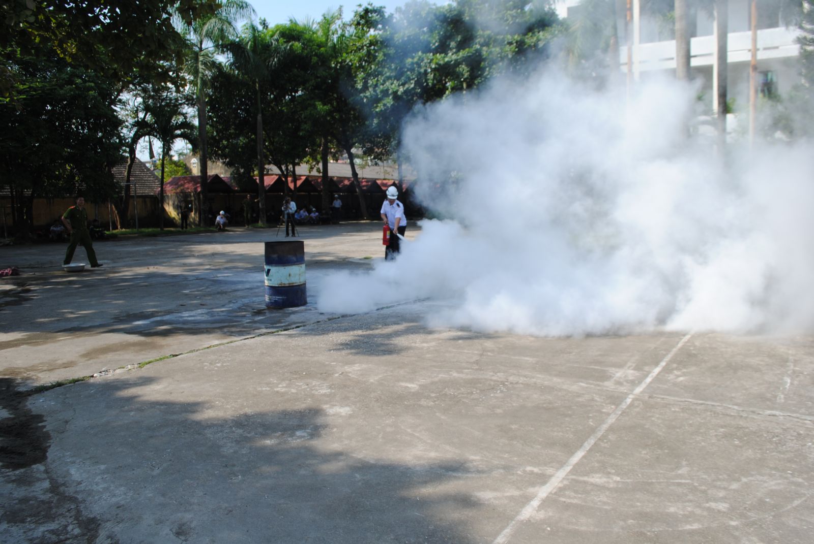 Tiếp theo nội dung lý thuyết, các học viên đã được thực hành thực tế đối với các phương tiện PCCC khi xảy ra cháy tại cơ sở.